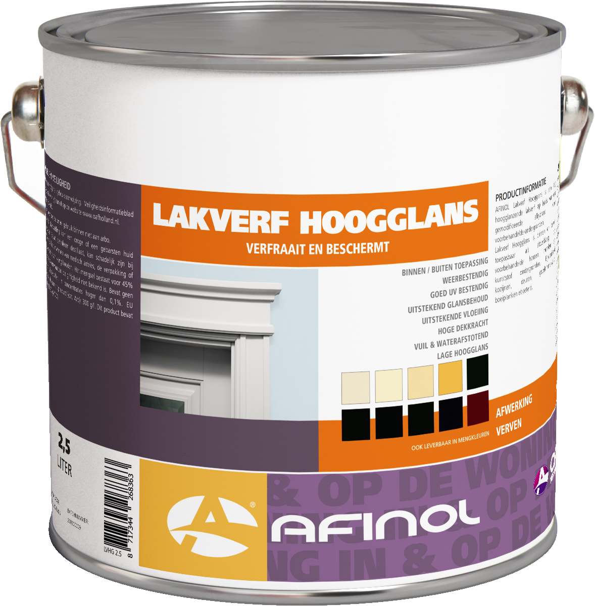 Afinol (OAF) hoogglans lakverf is op basis van een highsolid alkyd. Deze van uitstekende kwaliteit hoogglanzende verf is geschikt voor hout, metaal en kunststof en wordt veel toegepast op kozijnen, deuren, geveltimmerwerk, boeiplanken etc. Geschikt voor zowel binnen als buiten. Deze verf is te bestellen in meer dan 20.000 kleuren.EigenschappenUitstekend glansbehoudUitstekende vloeiingHoge dekkrachtWeinig oplosmiddelenGoede buitenduurzaamheid