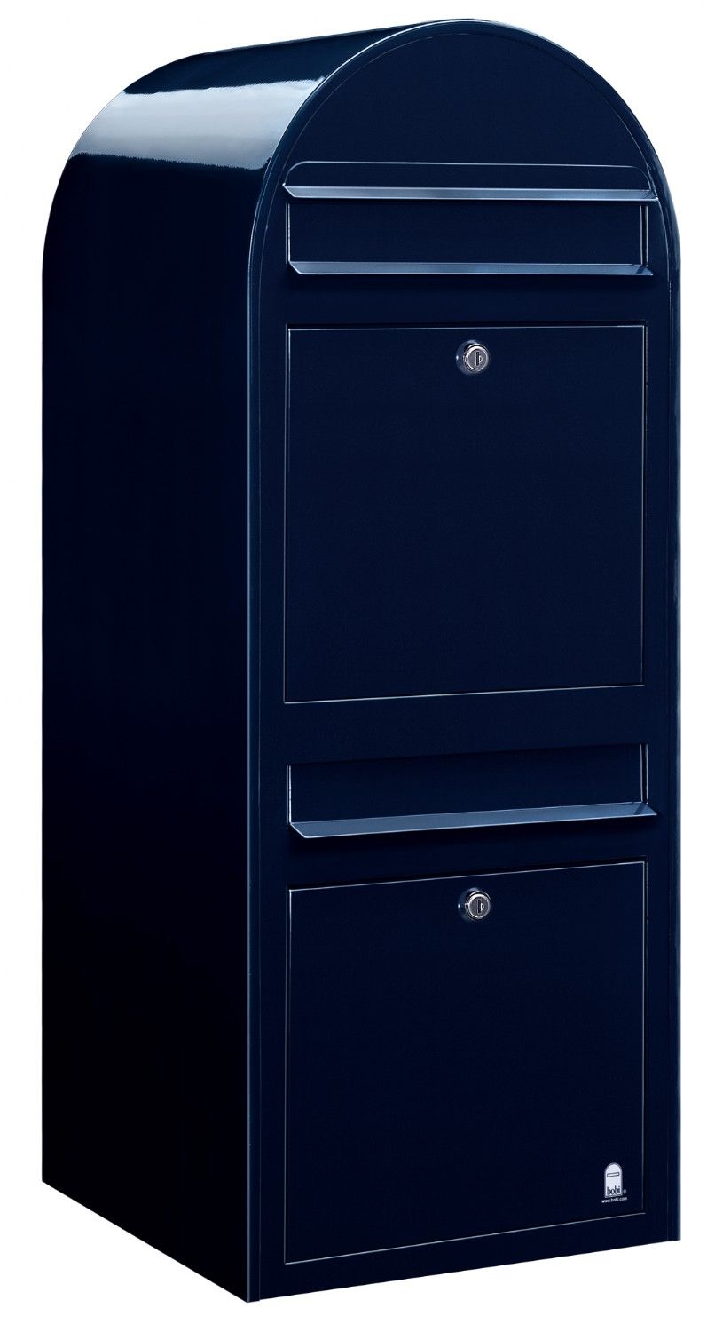 Bobi Duo brievenbus, uitgevoerd in de kleur zwartblauw. De Bobi Duo bestaat uit 2 brievenbussen en is speciaal bedoeld voor 2-familie huizen of bedrijven. Ook geschikt voor groepsmontage.