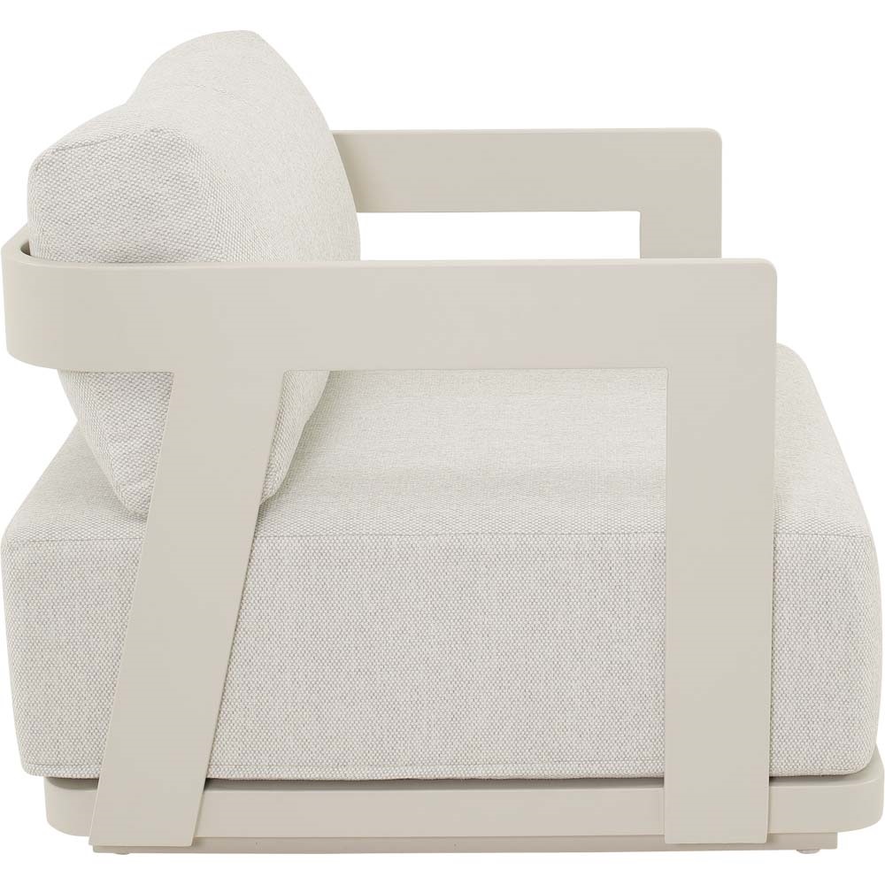 De Makai lounger biedt een comfortabele zitervaring met een ruime zitruimte dankzij de lange bench en afzonderlijke stoel. Door het duurzame aluminium frame en de Olefin-kussens geniet je langer van een frisse, verzorgde uitstraling zonder veel onderhoud.
