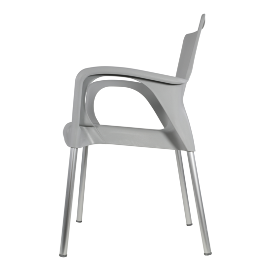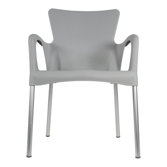 Deze grijze terrasstoel Bella is gemaakt van kunststof en staat op aluminium poten. De stoel is opstabelbaar en dus makkelijk op te bergen. Uw terras heeft er nog nooit zo kleurrijk bij gestaan dan met deze mooie stoelen. Combineren met verschillende andere kleuren is ook erg leuk en vrolijk.